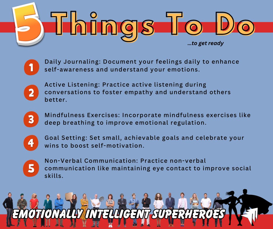 Embrace these five habits and become the emotionally intelligent superhero you were meant to be. Practice consistently; remember, every superhero's journey involves learning and growth. Ready to fly high with EQ?