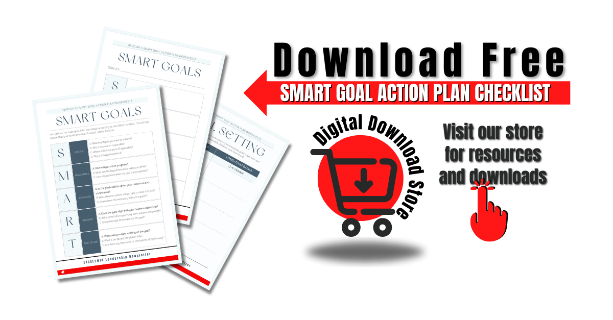 If you want more valuable insights and resources to enhance your leadership skills, I highly recommend subscribing to my EXCEL2WIN Leadership Newsletter. Stay updated with the latest leadership strategies, tips, and techniques to excel in your career. Don’t miss out - subscribe today and take your leadership journey to the next level! Download my FREE SMART Goal Action Plan Checklist PDF and turn your aspirations into achievable milestones. Don't miss out - it's free!